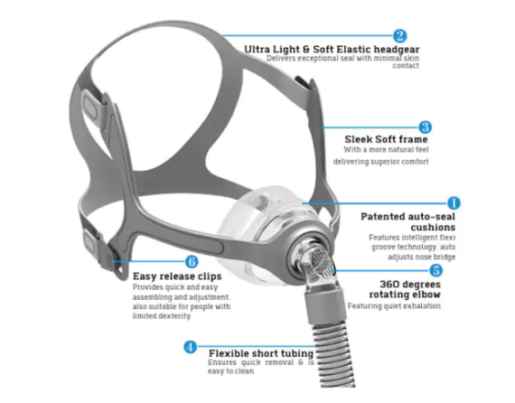 - Forehead Frame-free design ideal for bedtime reading (similar to the Respironics Wisp & ResMed Airfit N20)